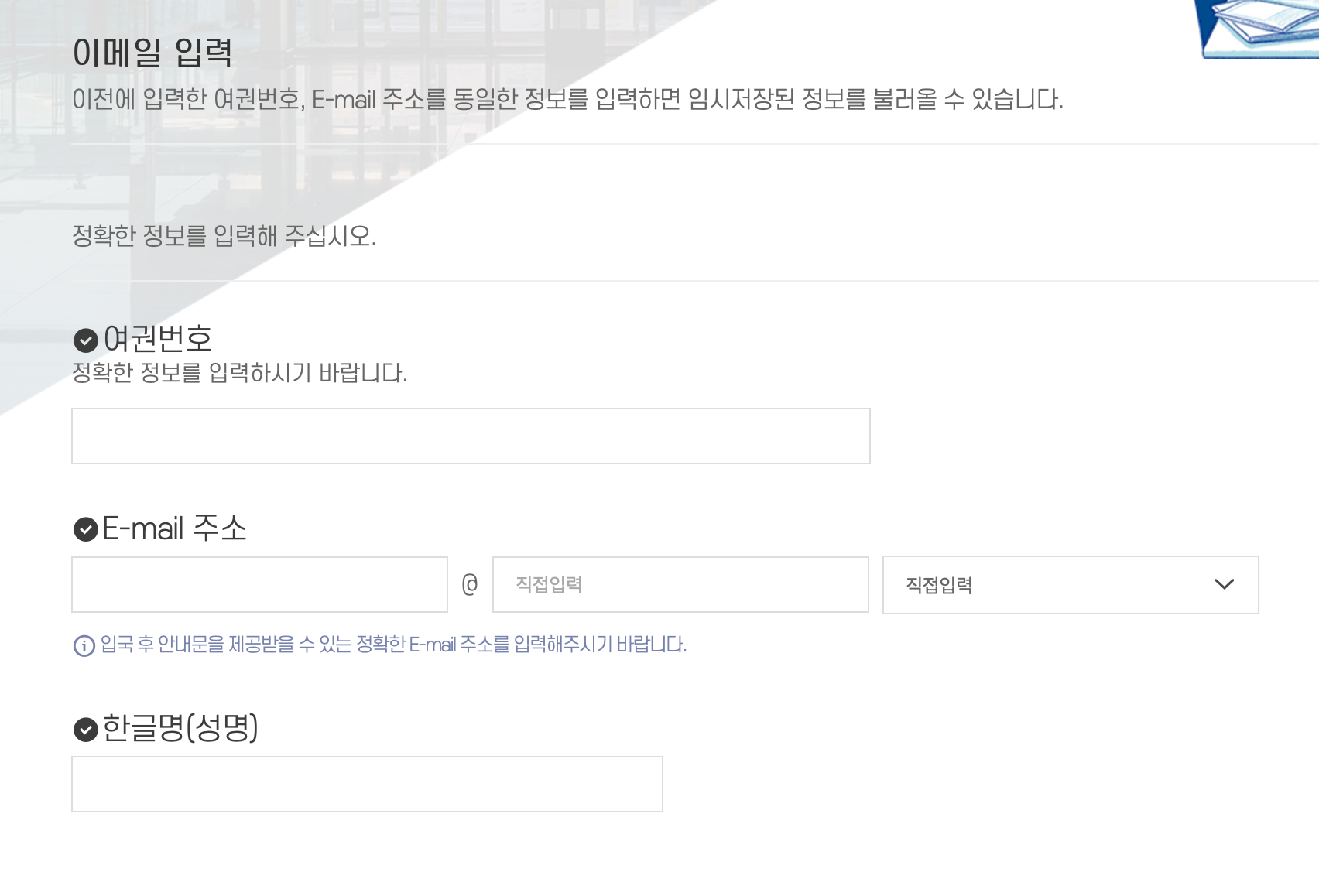3. 이메일과 여권번호를 정확히 입력한다.