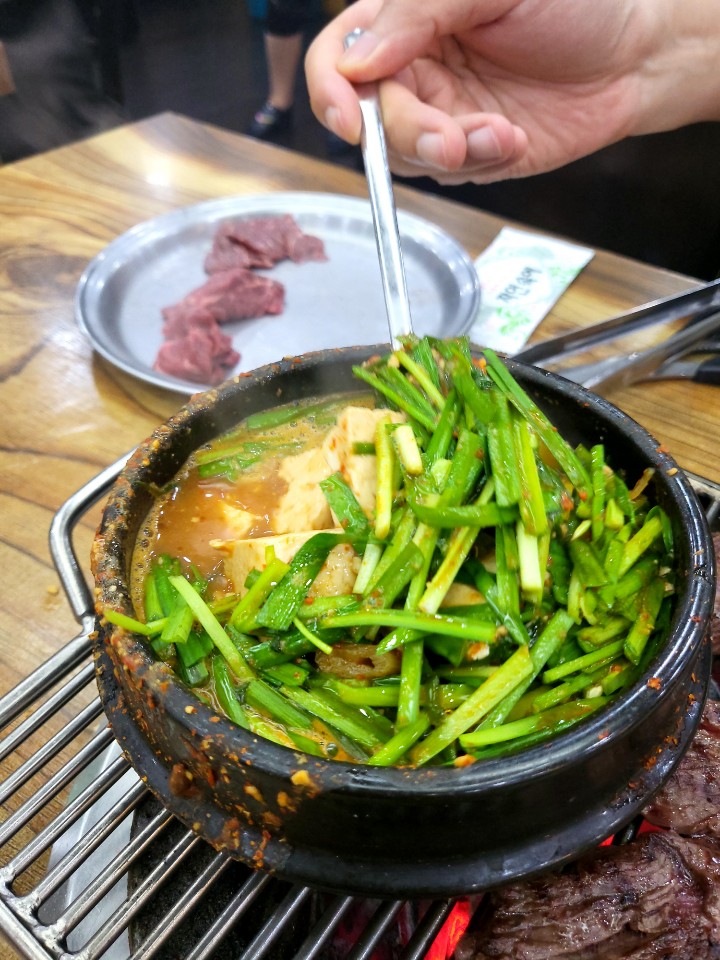 군더더기 없이 부추, 큼직한 두부 그리고 고기로 가득 차 있다