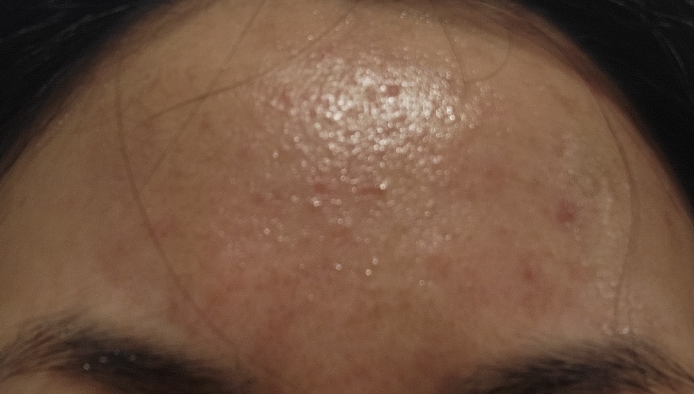 그리고 약간 이마 코,입주변 턱 피부가 두껍고 우둘두툴한느낌이다