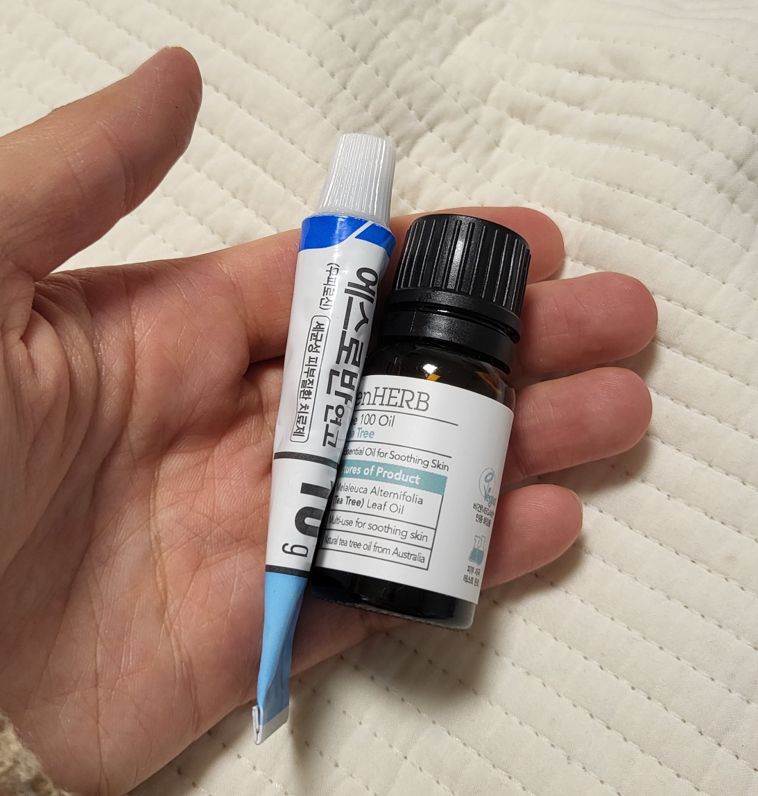처음엔 알로에젤+ 티트리오일 1방울 해서 얼굴에 발랐다가 씻어냈고